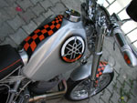 Klarsichtschrumpfschläuchen überzogen. Die Lackierung sowie Sattlerarbeiten wurden bei Bikers-Heaven einem guten Freund von mir erledigt. Die Vorderbremse von Billet (Vierkolben) sowie Griffarmaturen